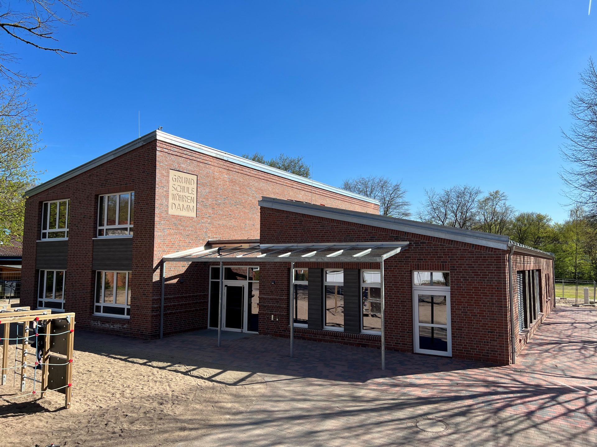 Auf dem Gelände der Grundschule Wöhrendamm wurde ein Neubau geschaffen, der Raum für Bildung und Begegnung bietet. Acht großzügige Gruppenräume unterstützen die verlässliche Nachmittagsbetreuung, während die Mensa mit Ausgabeküche bis zu 200 Grundschulkinder versorgt. Dank flexibler Planung lässt sich das Gebäude problemlos an zukünftige Bedürfnisse anpassen – mit Platz für vier moderne Klassenräume und eine Mensa mit etwa 80 Sitzplätzen.